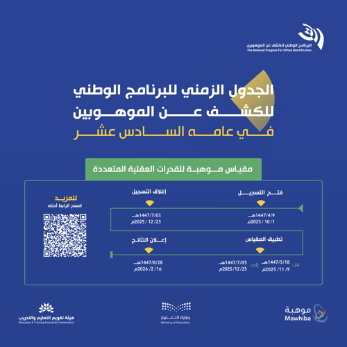 الجدول الزمني للبرنامج الوطني للكشف عن الموهوبين في عامه السادس عشر